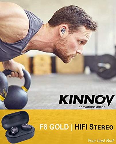 Do you want to dance to the groove with Hi-fi Stereo Earphones? Well, your wait is over as F8 Gold by Kinnov is here to rock your world! The earphones have an MFB Touch Button for picking up calls. The case has a power indicator light showing the power available with Earbuds Charging Port. When the earphones are charged, it will be indicated through the power light in the case. These Water-Proof Bluetooth earphones have these stand-out features: Listen to music 10 hours straight! And, no worries, keep it on standby for 180 hours. There is no reason not to go get these power-packed earphones, so just go grab them today!
