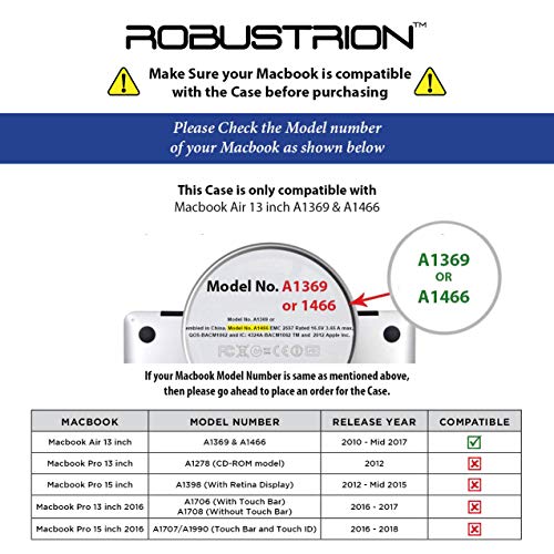 Robustrion Crystal Clear Hard Case Shell Cover For MacBook Air 13 inch (A1369 / A1466) (Year 2010 – Mid 2017) with Free Keyboard Protector Cover