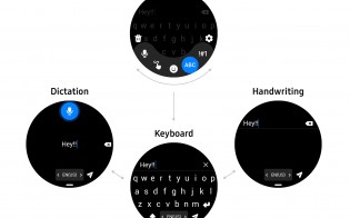 Next up, here’s the updated QWERTY keyboard interface showing three methods for inputting text: dictation, keyboard, and there’s a handwriting option as well.