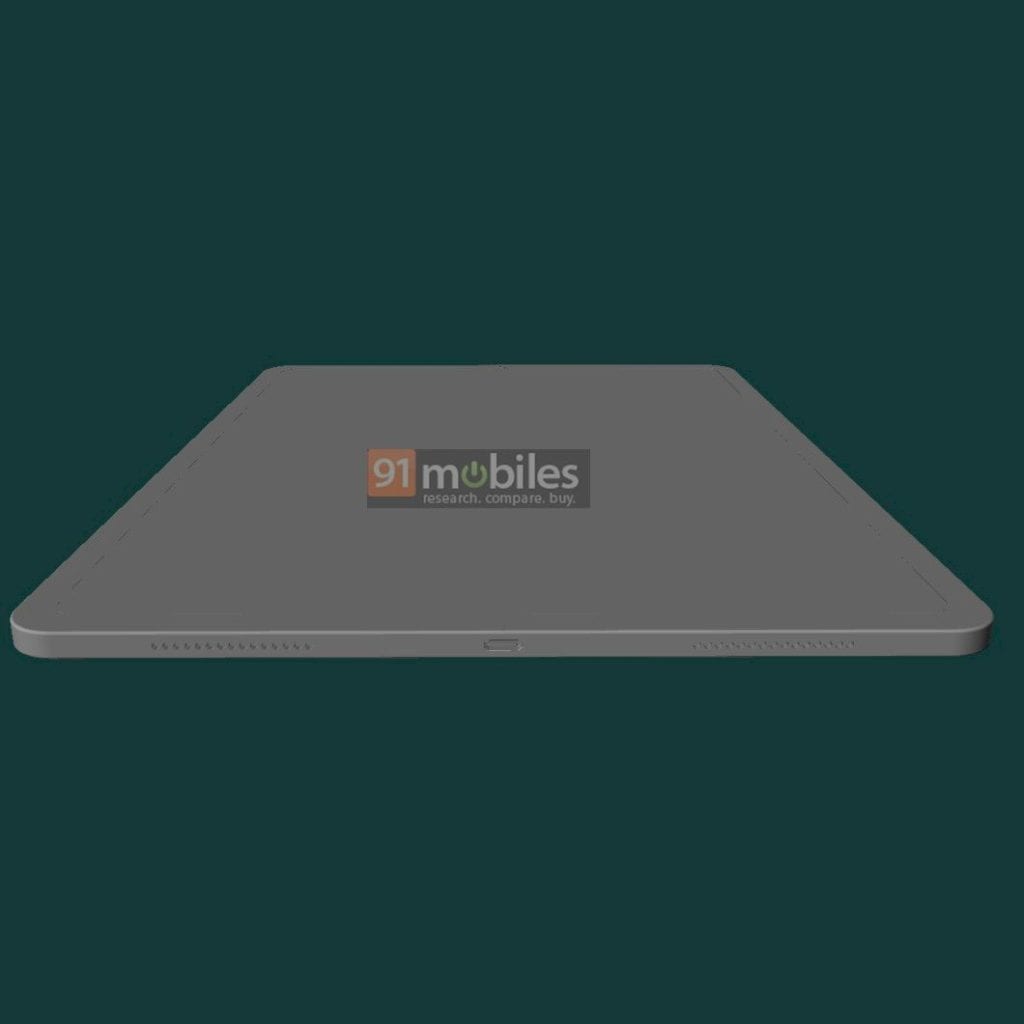 Notice the recessed area on the right. It looks like a Touch ID fingerprint reader similar to that of the iPad Air (2020). The fingerprint reader can be seen in the rendering of both tablets.