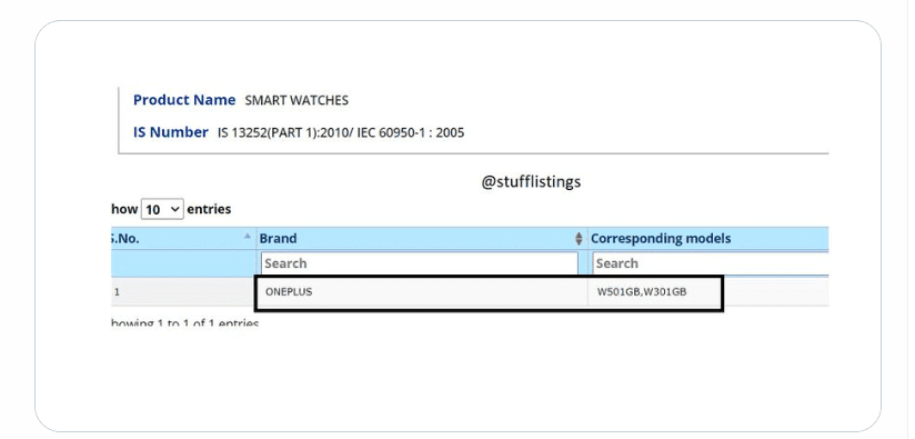And the latest leak, if you can call it, suggests that the device is about to be announced. The list of Indian BIS (Bureau of Indian Standards) shows that the OnePlus smartwatch is certified and there are two variations, judging by the model number- W501GB And W301GB.. The two versions appear to be compatible with the Wi-Fi only version and the LTE model.