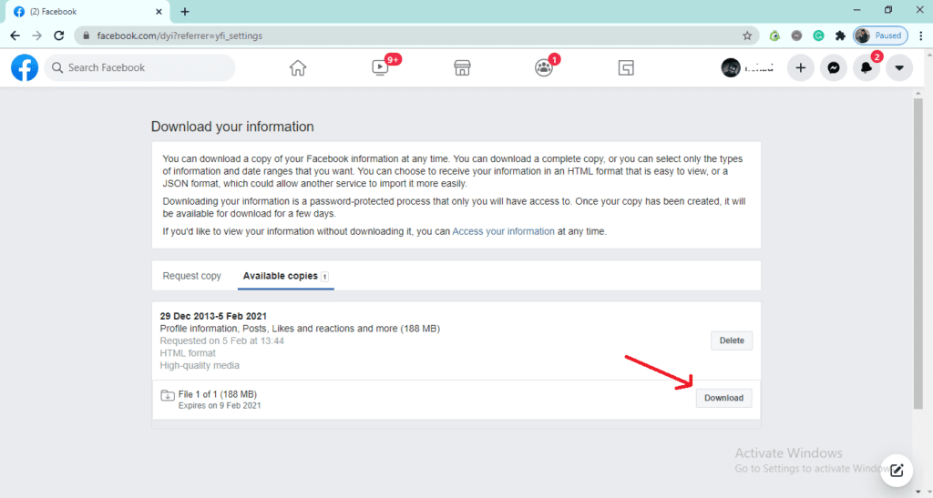 - Your Facebook Information section and select “Create File” Facebook Will Take Few Minutes To Get Ready To Download All Data.